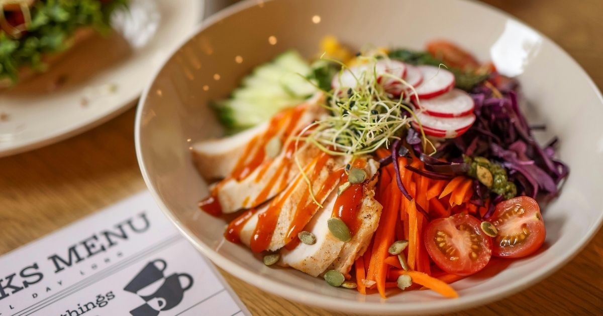 • 丼もの:ごはん少なめ+肉や魚が多いもの+サラダなど